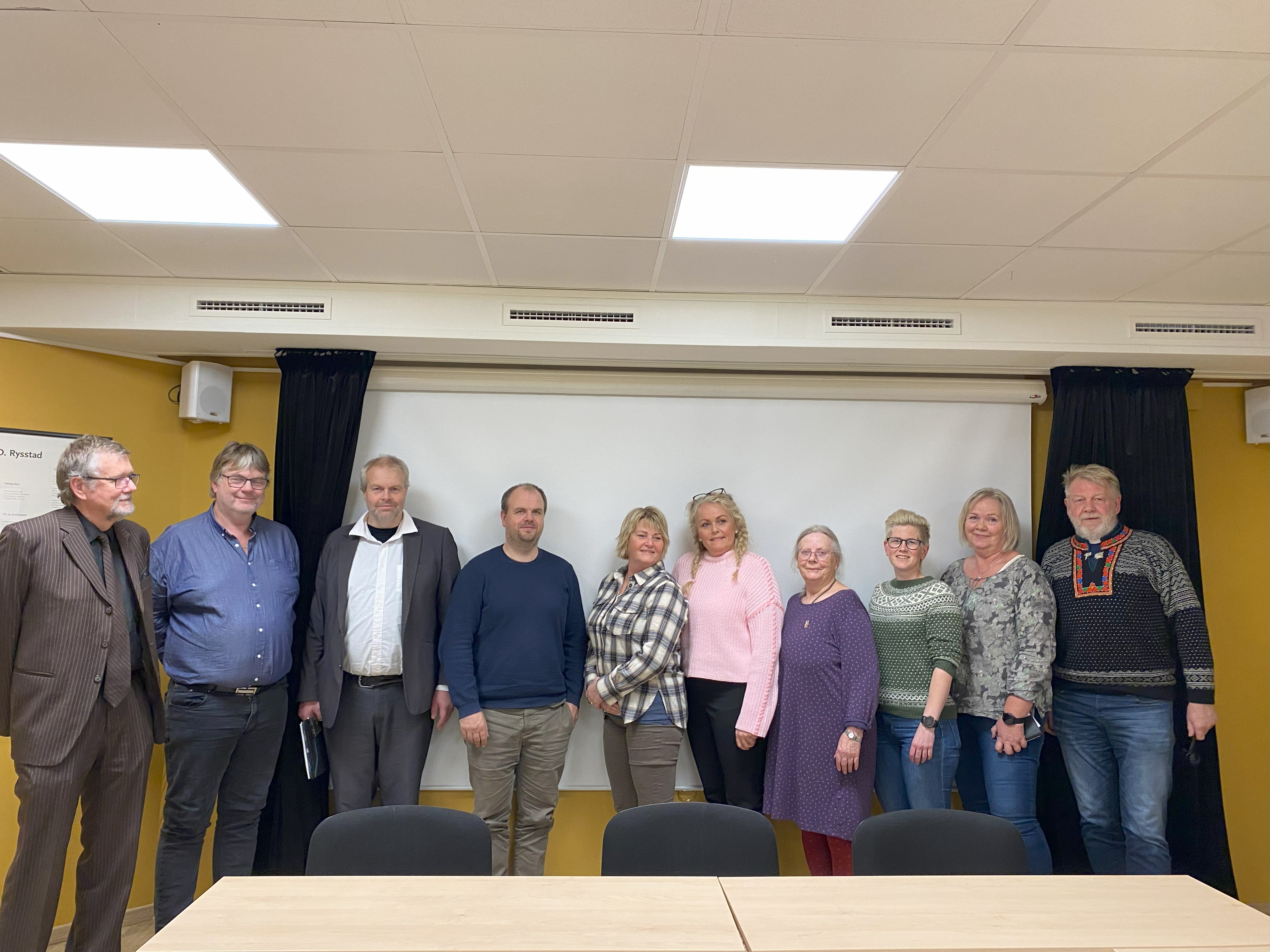 F.v.: Arne Tronsen, Knut Hagen, Knut Olav Uppstad, Torstein Bjørgum, Gudrun Sagneskar, Liv Gunn Viki, Lisbeth Dalquist Homme, Kristine Kleiveland, Margit Homme og Toralv Frøysaa Lie - sokneprest.